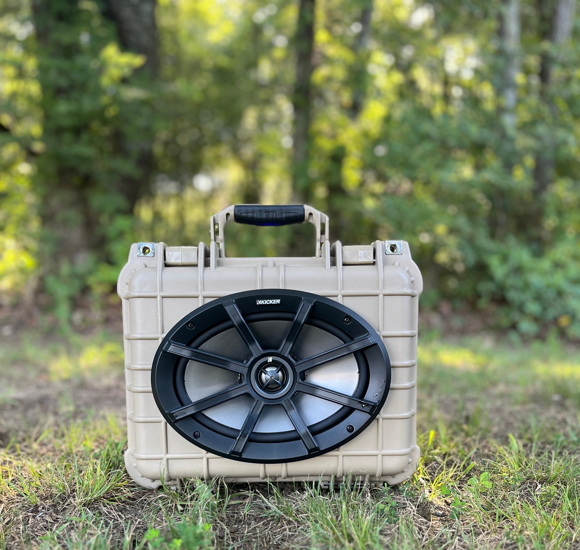 Includes a water resistant enclosure loaded w/ Kicker PS Marine 6x9, 100w BT amp, blue lighted power button, dual usb/usb-c w/ volt meter, rechargeable lithium battery w/ charging port and charger, misc wiring, connectors, & other supplies needed to complete the installation.